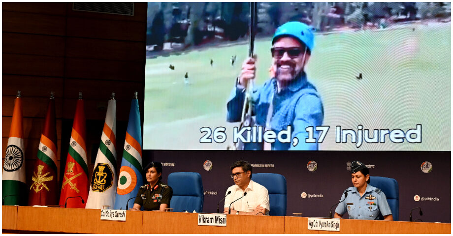 I den officiella publiciteten är ett av o:na knallrött för att visa allvaret i budskapet. Och symboliken stannar inte där. När Indiens utrikesminister Vikram Misri mötte pressen i New Delhi flankerades han av överste Sofiya Qureshi från armén och överstelöjtnant Vyomika Singh från flygvapnet som tog över presentationen.