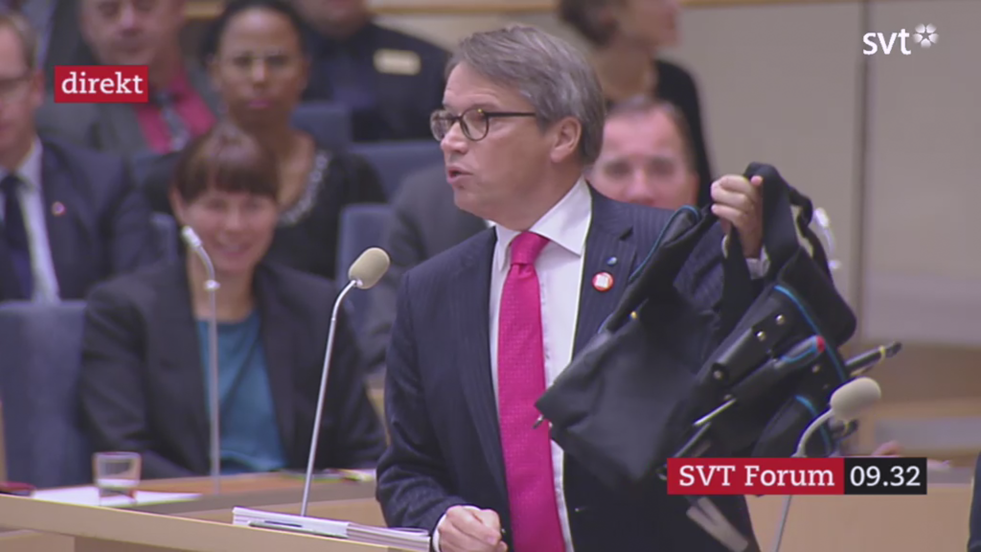 Jonas Sjöstedt (V) – Gåva: Boken “Reinfeldteffekten” skriven av Aron Etzler, Vänsterpartiets partisekreterare.