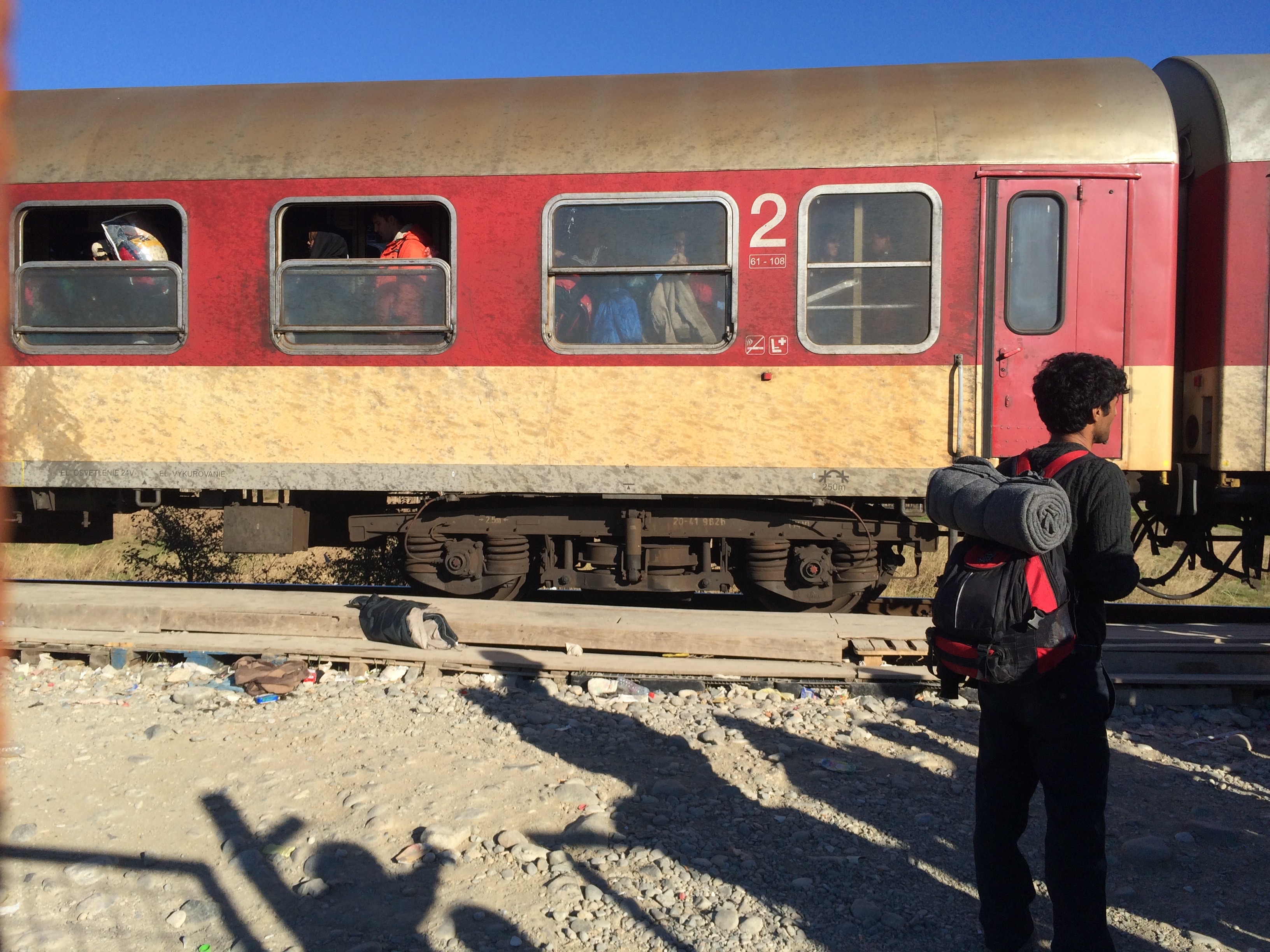 Det är en öppning i det låga taggtrådsstängslet vid gränsövergången. På makedonska sidan två militärer, ett tält och en jeep. En grupp ska precis släppas över för att kunna fortsätta sin färd genom Makedonien, Serbien, Kroatien, Slovenien och vidare mot slutmålet.