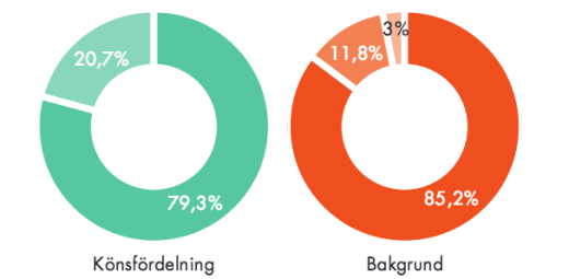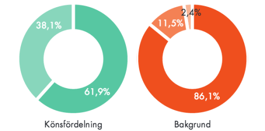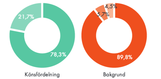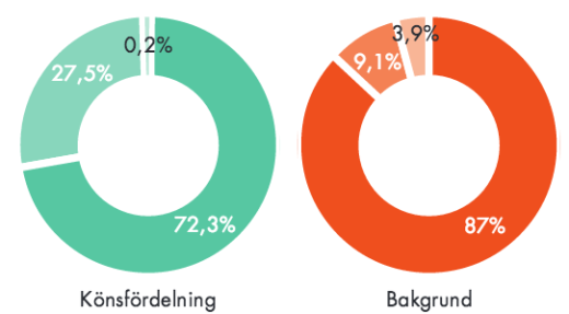 Trots att det finns lika många män som kvinnor i befolkningen är männen överrepresenterade i nyheterna. Mindre än var tredje person som syns i nyhetsmedier är en kvinna. 18 procent av befolkningen har utomnordisk bakgrund, men deras representation i nyheterna är bara 9 procent.