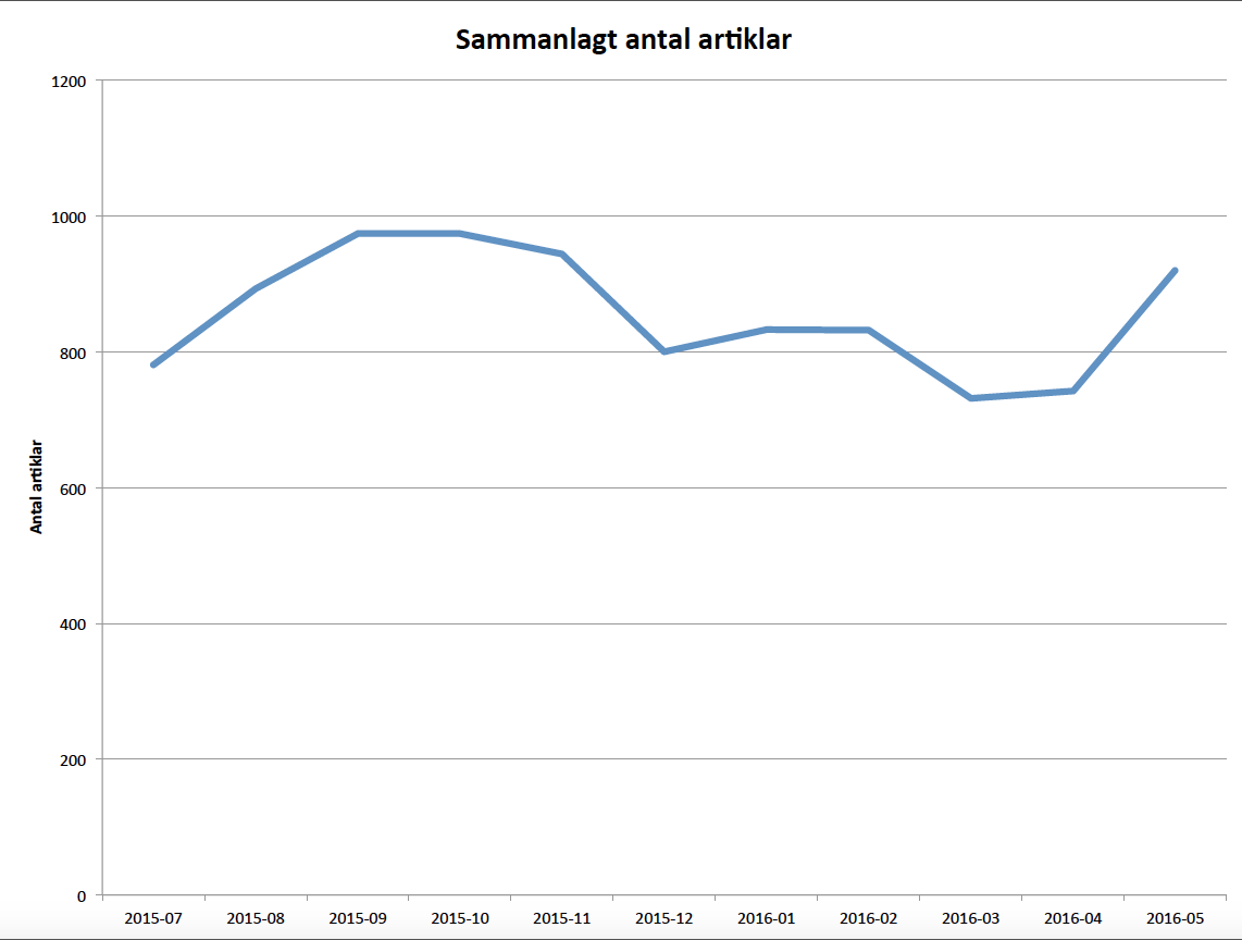 Facebook stod för den större delen av spridningen av materialet. Totalt ingick 9 424 artiklar i mätningen.