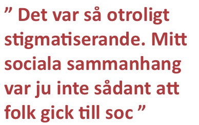 Det är lätt att bli paranoid när det gäller Soc. Ibland verkar hela systemet gå ut på att de som söker pengar ska ge upp och inte söka igen. Så svårt är det. Först tar man kontakt. Vilket kan ta ett tag innan man får tag på någon. Efter det får man komma på möte. Sedan görs en utredning. Sedan får man söka pengar och kan få avslag. När man väl är inne i systemet och överhuvudtaget får söka pengar, är det lite som att spela lurkortsspelet Stjärna med ett storasyskon. Reglerna ändras hela tiden, något som funkade förra gången går plötsligt inte igenom.”
