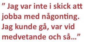 – Jag var inte i skick att jobba med någonting. Jag kunde gå, var vid medvetande och så, men jag blev jättetrött efter en timme. Det blev som strömavbrott, eller som när en dator slocknar. Jag kunde inte pressa mig själv. Det gick inte.