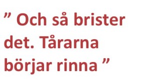 Och så brister det. Tårarna börjar rinna. Vi sitter tysta ett tag, sedan samlar hon sig. Försöker förklara det plågsamma.