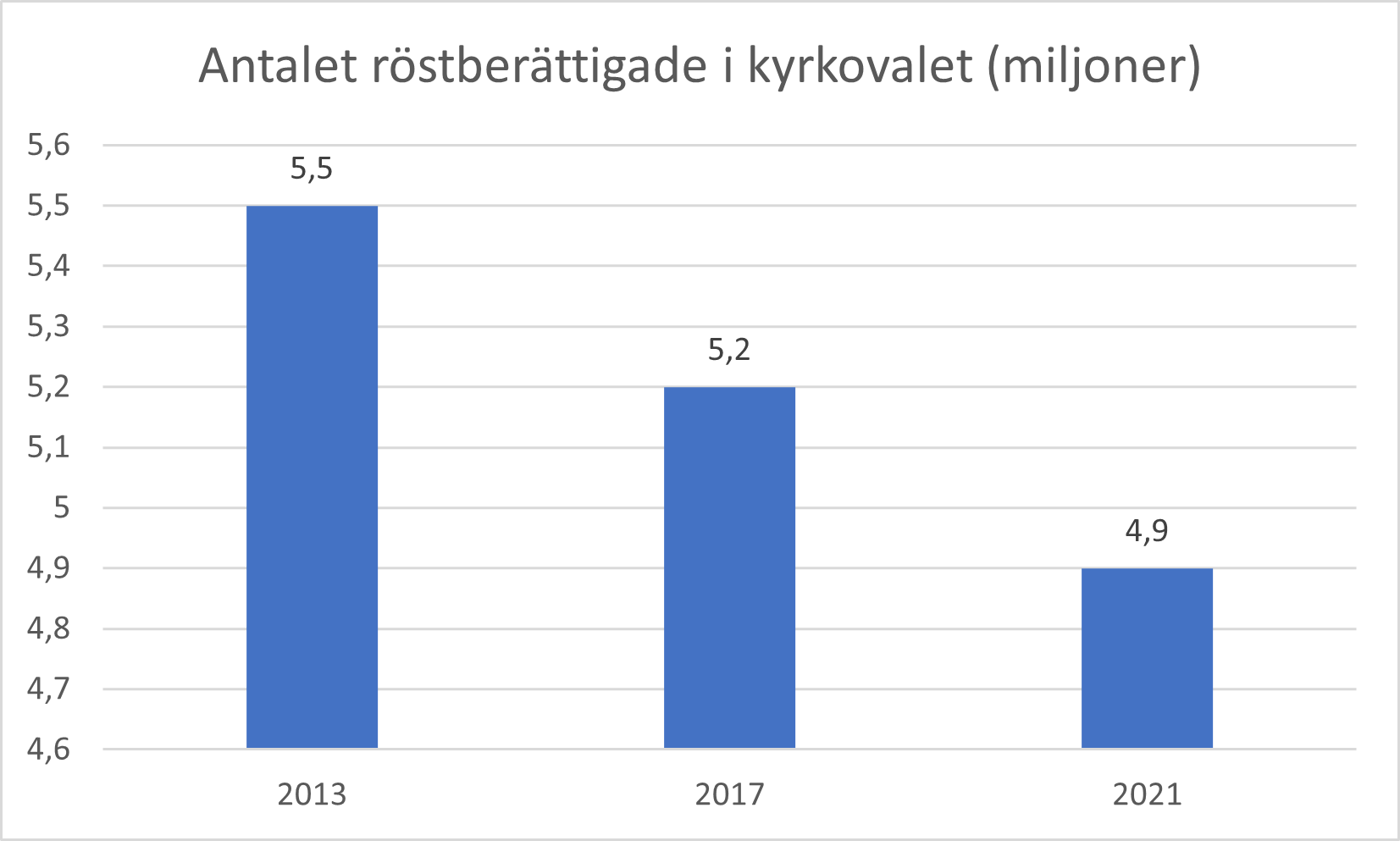 Klart är i alla fall att det sedan 2013 års val har skett en nedgång i antalet röstberättigade. Cirka 600 000 personer färre har rösträtt i år, vilket handlar om att det är färre som är medlemmar.