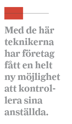Med de här teknikerna har företag fått en helt ny möjlighet att kontrollera sina anställda. De kan nu få reda på saker som inte är relaterade till jobbet. Den här förlängningen bortom mer konventionella mätmetoder – som till exempel prestation, resultat eller antal timmar spenderade på arbetsplatsen – innebär en dramatisk förändring i hur den anställde kontrolleras. Nu handlar det inte längre om vad vi har för oss på jobbet. Det handlar om vilka vi är: hur vi äter, sover och hur mycket vi dricker. Företagets insyn har blivit alltmer penetrerande och är inte längre bunden till arbetsplatsen. Den förflyttas snarast gränslöst, obehindrad av rum och tid.