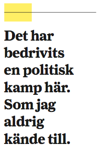Det har bedrivits en politisk kamp här. Som jag aldrig kände till.