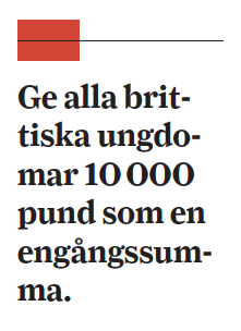 Tanken är att utjämna de väldigt olika möjligheter till start- eller sparkapital som är en av ojämlikhetens viktiga konsekvenser. Men frågan är förstås om ungdomarna skulle investera sina pengar så klokt som professorn förväntar sig av dem.