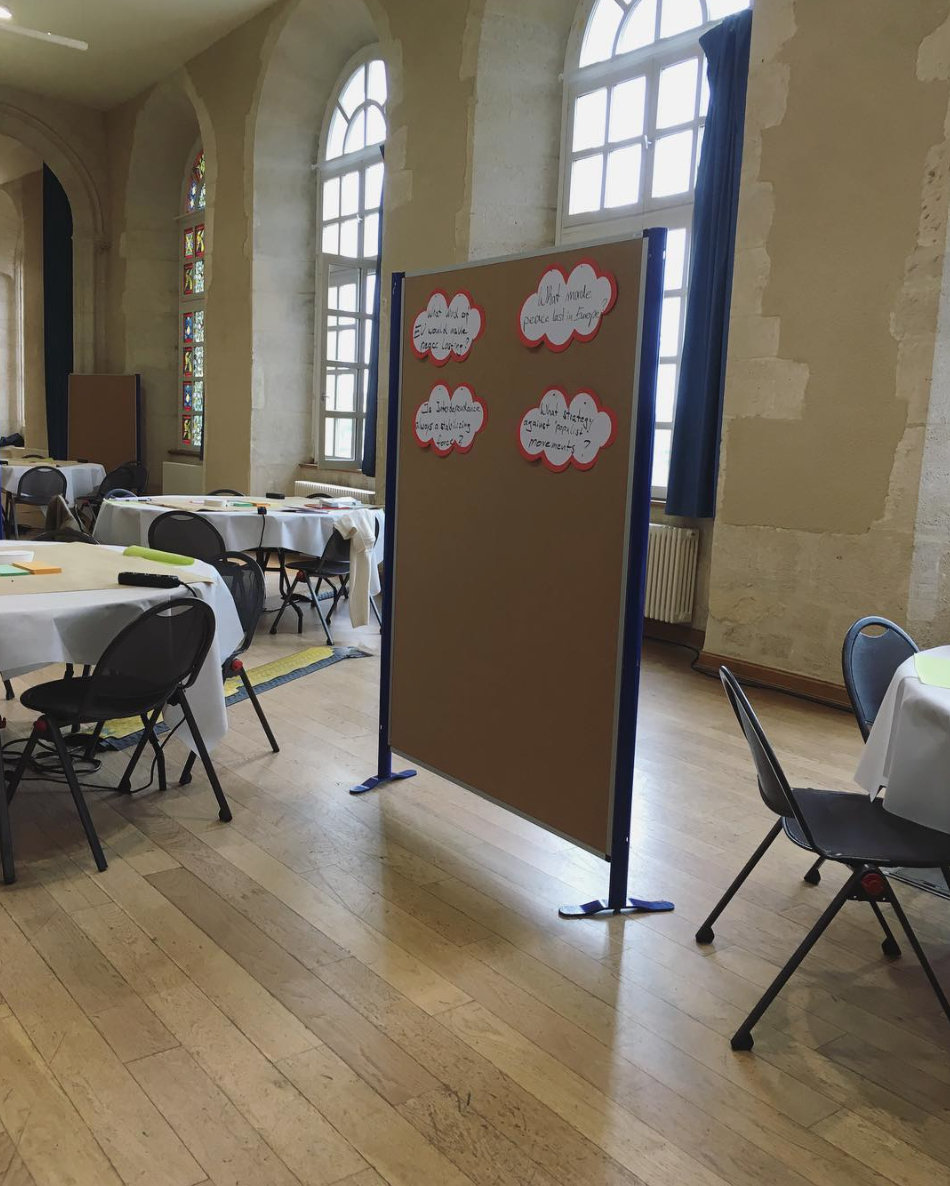 Vi tittar oroligt på varandra. »World Café?«. Ingen har hört talas om World Café, men ingen vill säga att de inte gjort det. Chefen fortsätter därför att förklara upplägget. Vi, 24 vad det verkar närmast slumpmässigt utvalda men en smula vänsteranstrukna #youngleaders, ska vandra från bord till bord och diskutera teman på EU och Europas framtid och roll som garanti för världsfreden. Vid varje bord sätter sig, som av en händelse, en deltagande socialdemokratisk frivillig tysk och för noggranna anteckningar. Viktiga samtal utbryter.