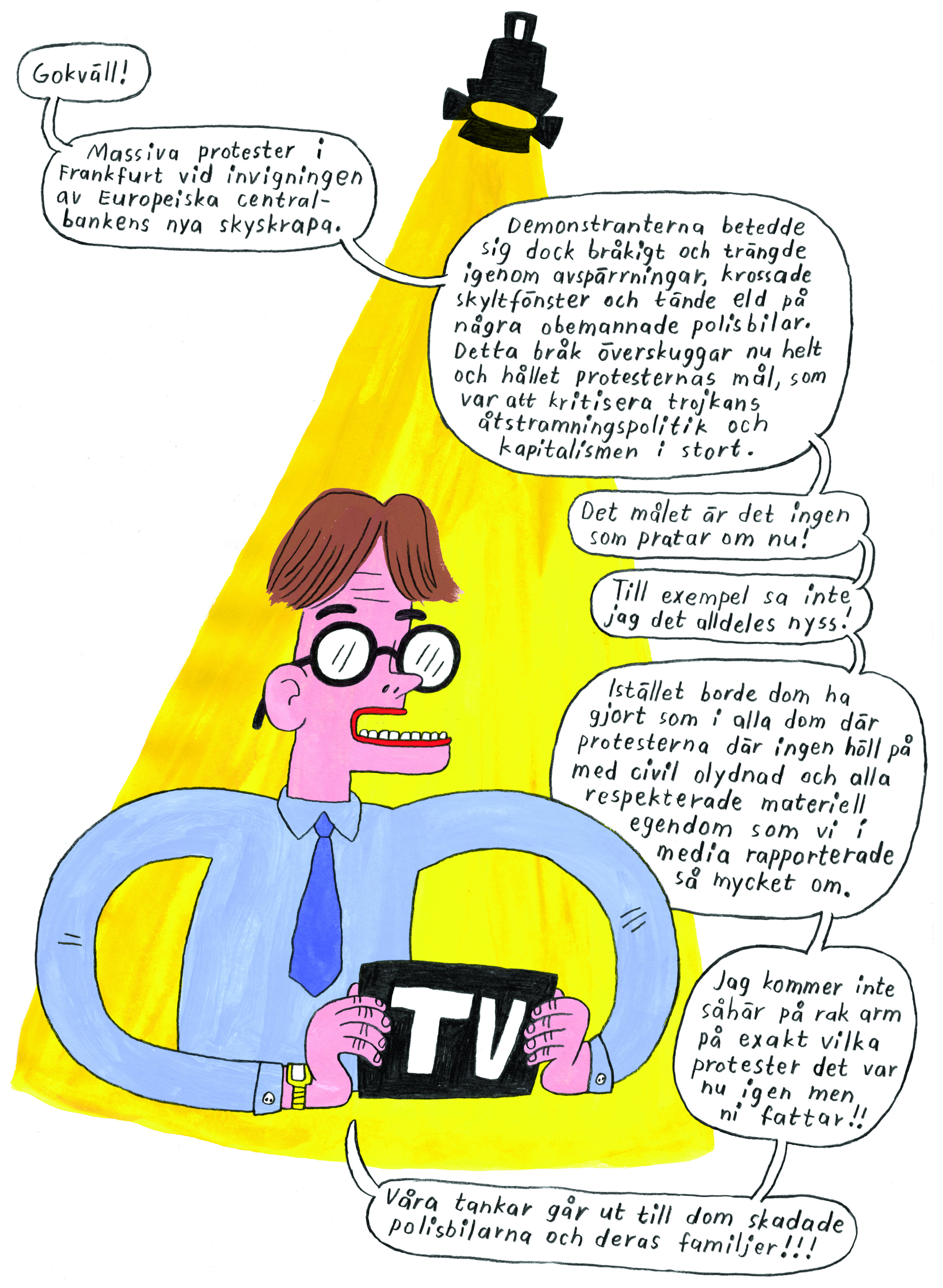 "Jag tyckte det var en jättebra text ni skulle trycka och nu blev det ju som ett behov av att göra en ny version." Carl Johan De Geer om varför han tackade ja till att uppdatera Skända flaggan.