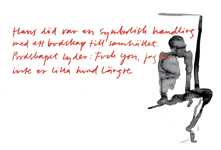 Ett minne från när jag fick reda på det: En vän ringer och säger att Samir har åkt till Syrien för att kriga. Jag börjar kolla igenom sociala medier, jag hittar Ghuraba-gruppen som dagligen postar bilder. Det är många bilder på krigarnas lik, och deras död formuleras i positiva termer. Nu är de i himlen, sörj inte. Jag går in någon gång i veckan för att se om Samir har avlidit. Jag fick aldrig se en bild på honom. Det var nog bäst så.