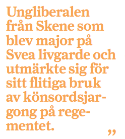 På ett rent individuellt plan är han rätt så genomskinlig. Delvis är det hans personliga egenskaper som lett till denna utveckling. Han är trots allt ingen lärare och han är ingen, för att använda ett ord han själv ofta nyttjar, ”akademiker”. Han är militär. Han har fostrats i en mer auktoritär tradition än den som präglat frisinnet och Folkpartiet.
