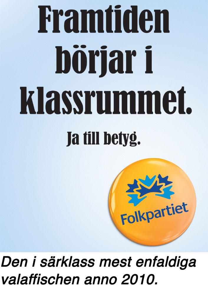 Skolfrågan blev samtidigt populär. Björklund drog uppmärksamheten till sig. Skulle man över huvud taget få några väljare framöver kunde man inte släppa denna fråga ifrån sig. Den blev ett flöte, inte ett sänke. Att Björklund övergav mycket som var heligt i partiets stolta skolhistoria gjorde mindre, det handlade om att över huvud taget ha något att säga. För vad har Folkpartiet annars sagt de senaste femton åren?