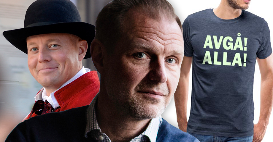 När Björn Söder därefter vandrar ut från kammaren passerar han riksdagens lilla souvenirbutik, där en t-shirt oväntat har blivit säsongens storsäljare. Tröjans budskap går att få med bokstäver i valfri kulör: Avgå! Alla!