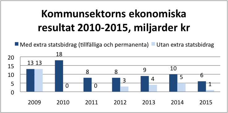 Kommunsektorns möjlighet att leverera den välfärd som önskas av medborgarna är i dag starkt beroende av regeringens välvilja. Under konjunkturnedgångar är den stora frågan i kommunsektorn om regeringen ska gå in med extra statsbidrag eller inte.