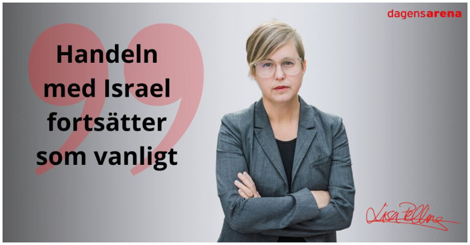 Tvärtom. De bilaterala relationerna mellan Sverige och Israel ska främjas, meddelade utrikesminister Maria Malmer Stenergard när hon besökte Israel i mars i år. Handeln fortsätter som vanligt, vapenhandeln till och med utökas. En rapport från Riksdagens utredningstjänst visar att den svenska vapenimporten från Israel mer än dubblats under det senaste året, och vapenexporten har inte stoppats.