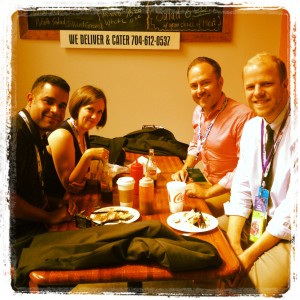 Sedan åt jag pulled ”pork with hush puppies”, väldigt typisk mat här i North Carolina, till lunch med vännerna Martin Gelin och Daraka Larimore-Hall samt hans filckvän Hillary