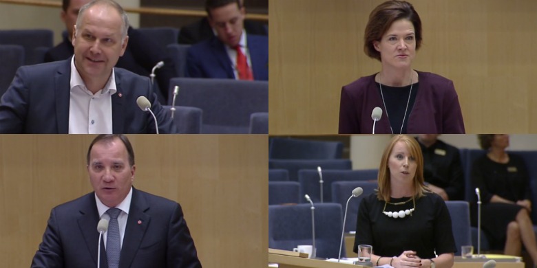 Mest uppskattande ord om motståndaren (med baktanke): Stefan Löfven berömde Annie Lööf för att visa ryggrad i sin hållning mot SD. »För det ska Lööf ha ett erkännande. Här svajas det inte i kampen mot rasism«. Annie Lööf svarade med att Löfven försökte fria till Jimmie Åkesson genom att söka stöd för förslaget om kollektivavtalsenliga villkor vid offentlig upphandling. »Det skulle jag aldrig göra«, sa Lööf.