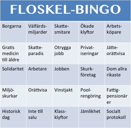 I dag, söndag, drar Almedalsveckan 2016 sin sista suck och klockan 19 äntrar Jonas Sjöstedt scenen. Och då, mina vänner, är det dags för årets sista floskelbingo!