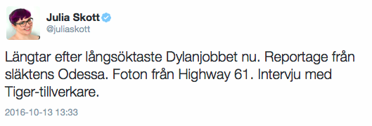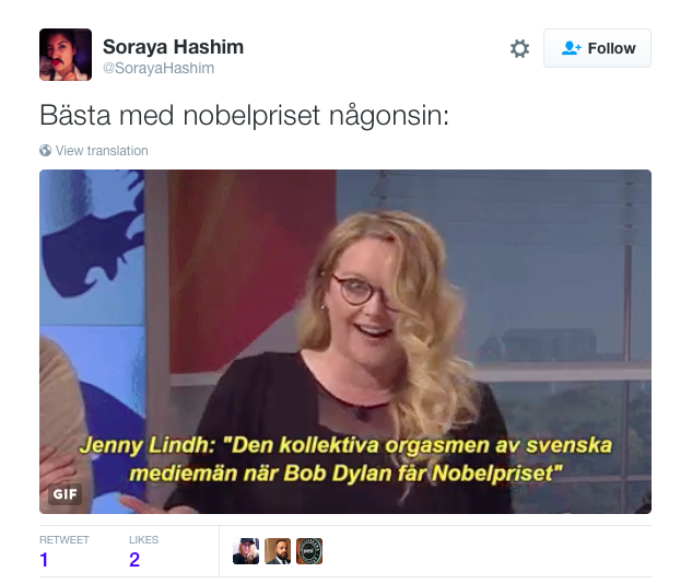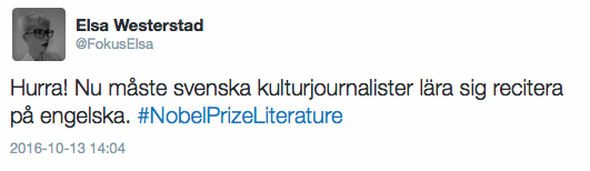 Det dröjde inte många minuter efter att vi fått reda på att årets Nobelpris i litteratur går till Bob Dylan, förrän Sydsvenskans Per Svensson skrek rakt ut.