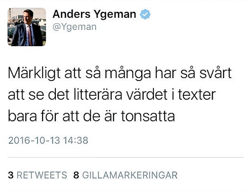»Man ger det till en trubaduuuuur«, »En trumpifiering av Nobelpriset«, »Akademien ger efter för populism« löd kulturjournalistens uttalanden. Han var knappast ensam om att rasa. Men minst lika många hyllar valet.