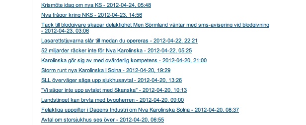 Historien om Nya Karolinska sjukhuset börjat allt mer lika en såpopera. Till nästa avsnitt sänds kan ni ta er en titt på pressklippen om Stockholms nya sjukhus: