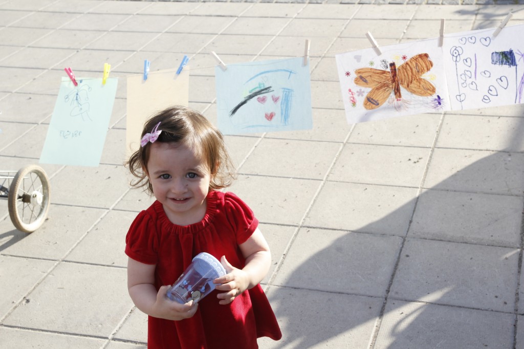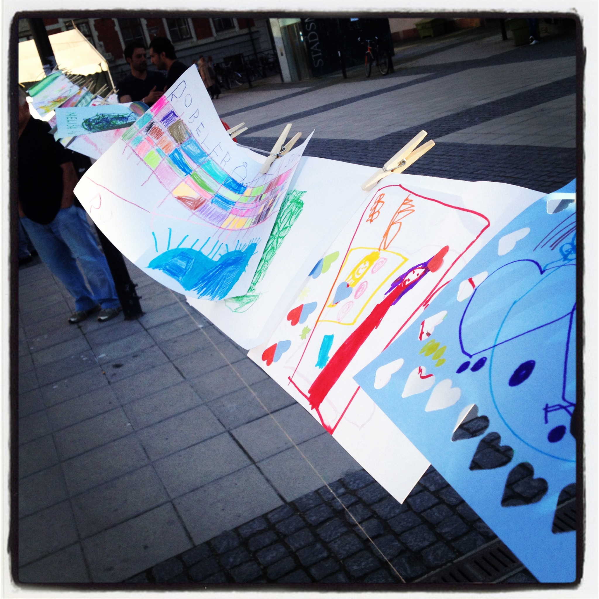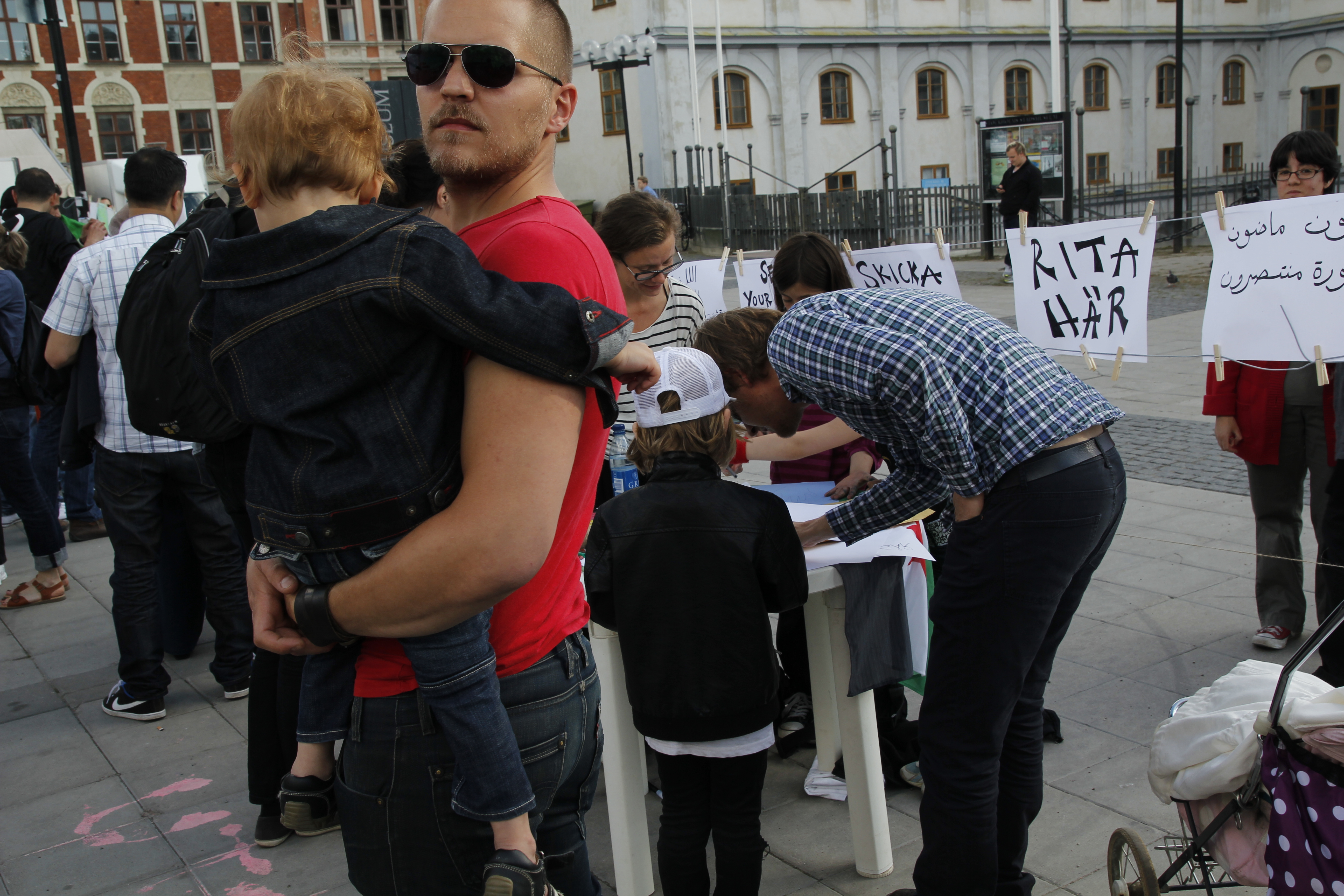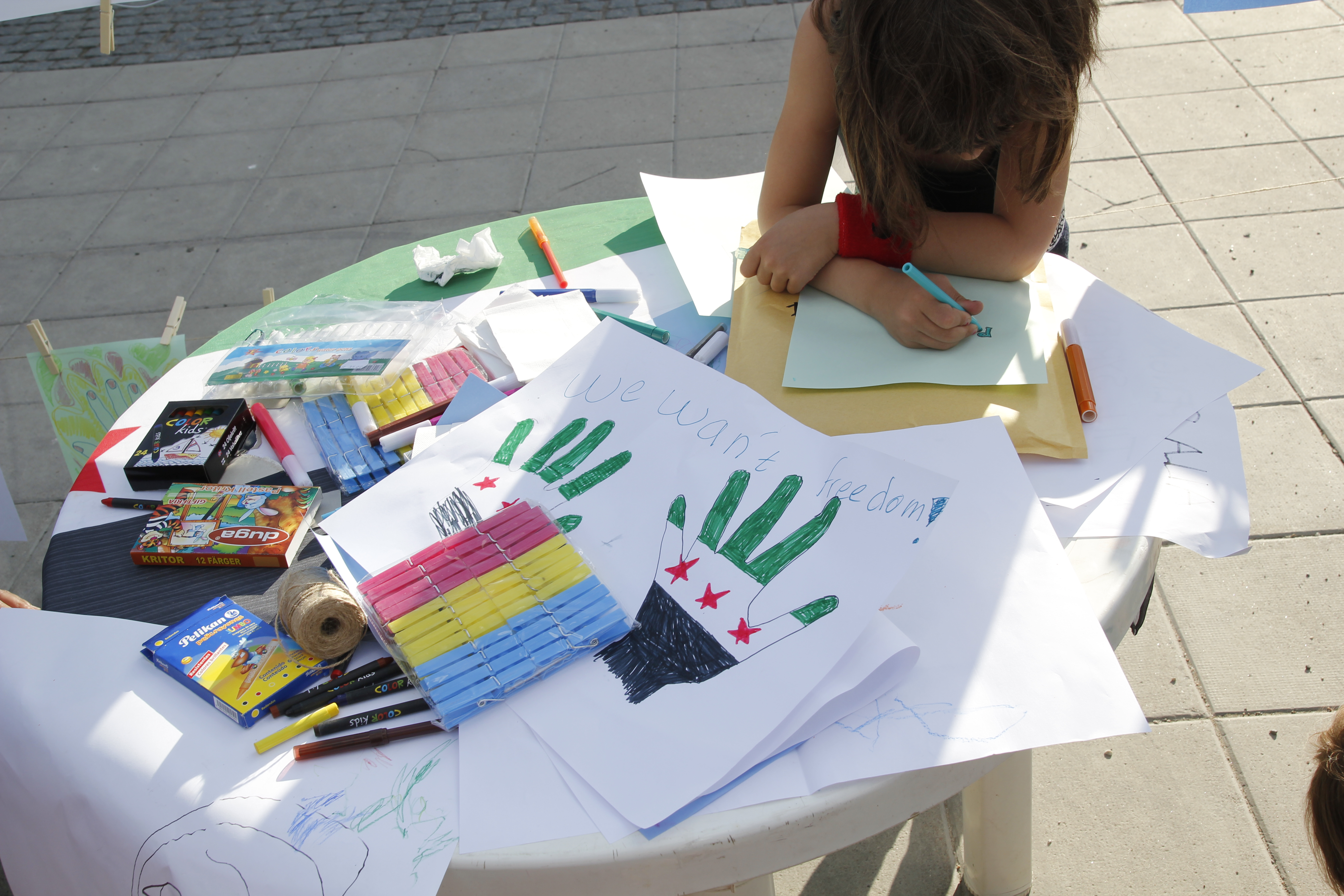 Besökarna uppmanades att ta med sig barnskor. Dessa ställdes ut för att symbolisera alla barn som mördats av regimen sedan revolten inleddes för 15 månader sedan. Barn och vuxna ritade teckningar och skrev hälsningar till barnen i Syrien. Dessa kommer att samlas på en blogg och förmedlas vidare till barnen i Syrien. Manifestationen arrangerades av frivilliga personer och var politiskt obunden.