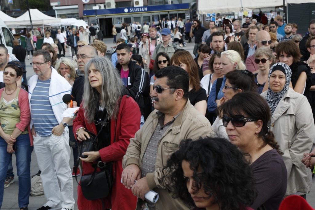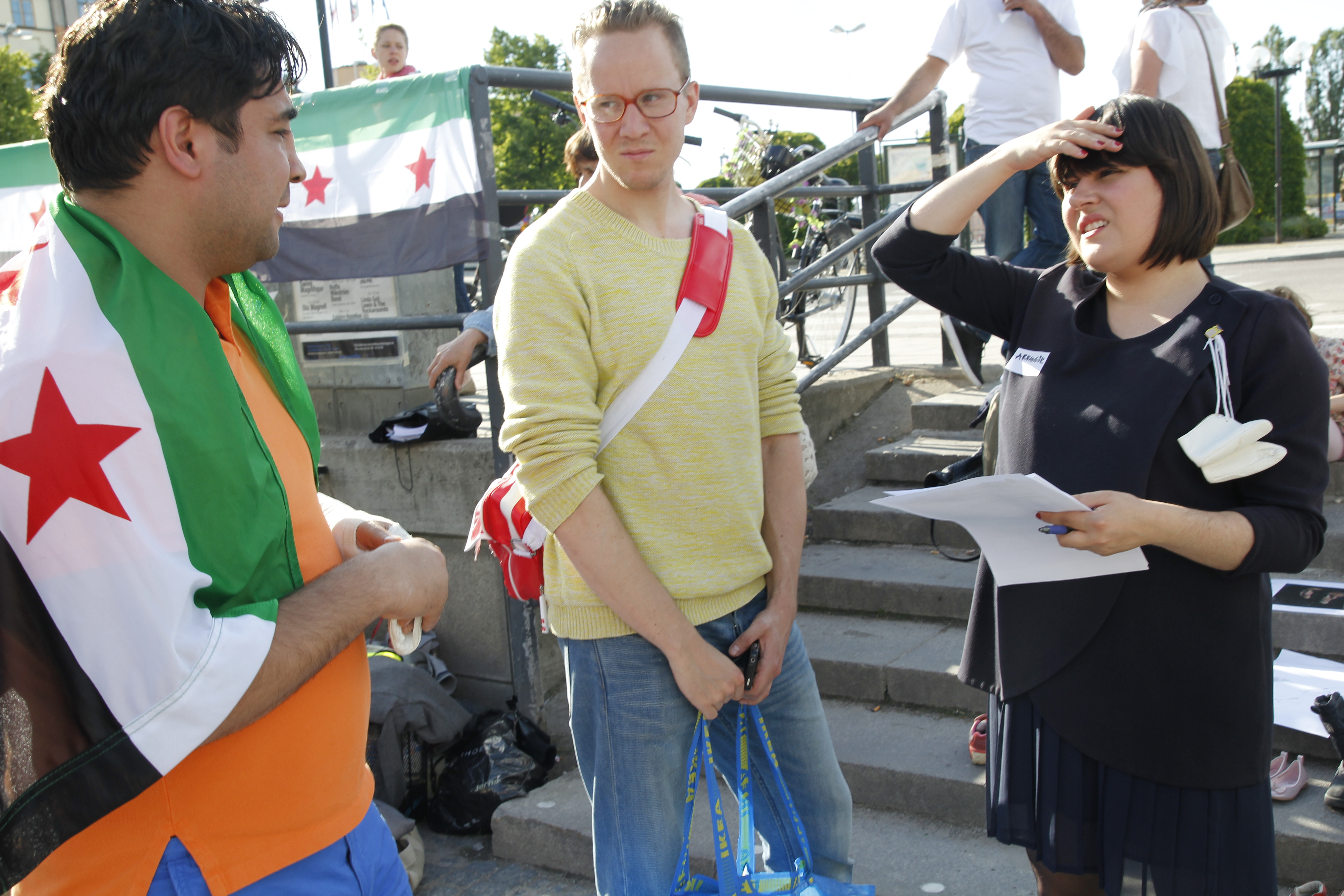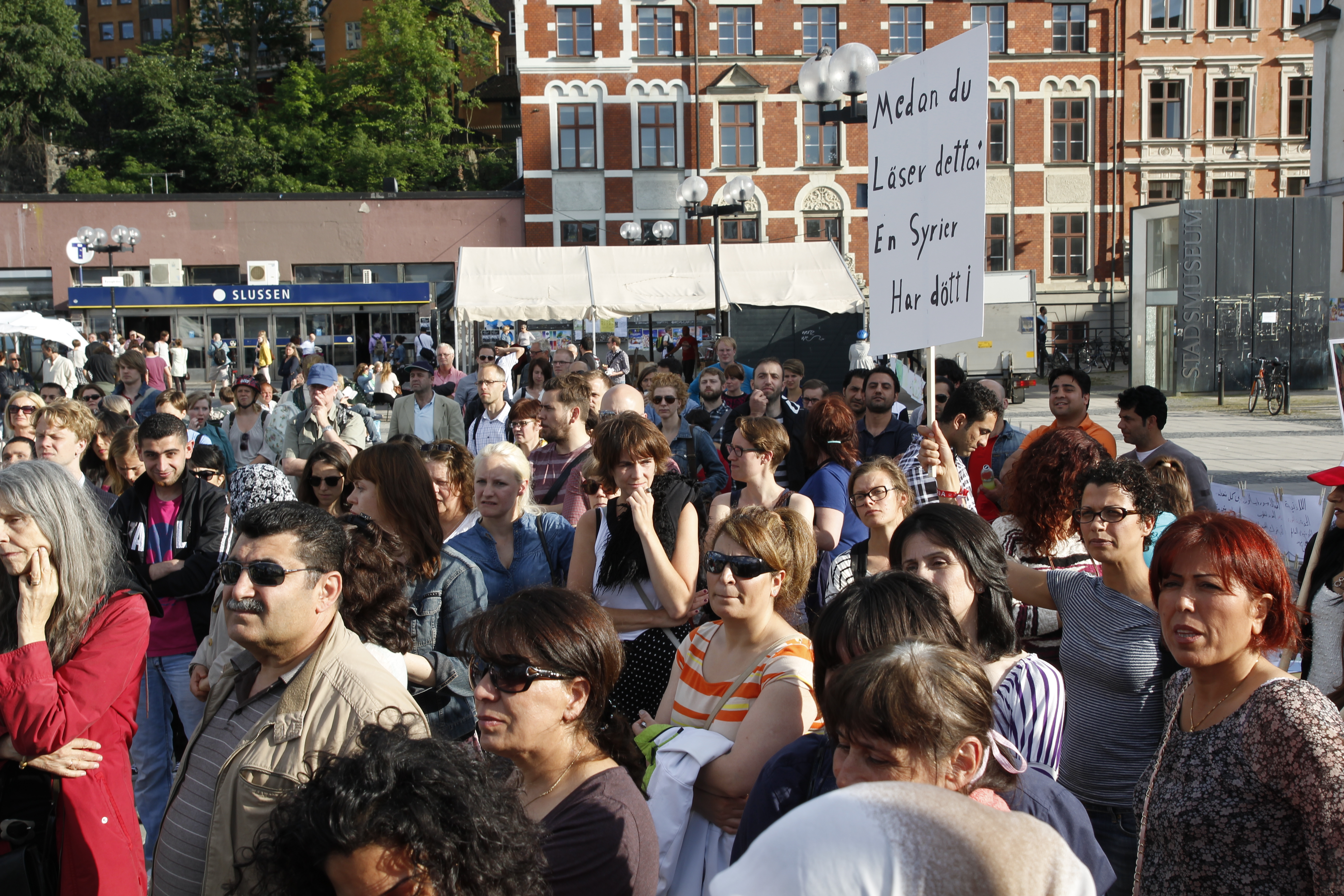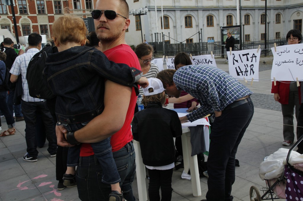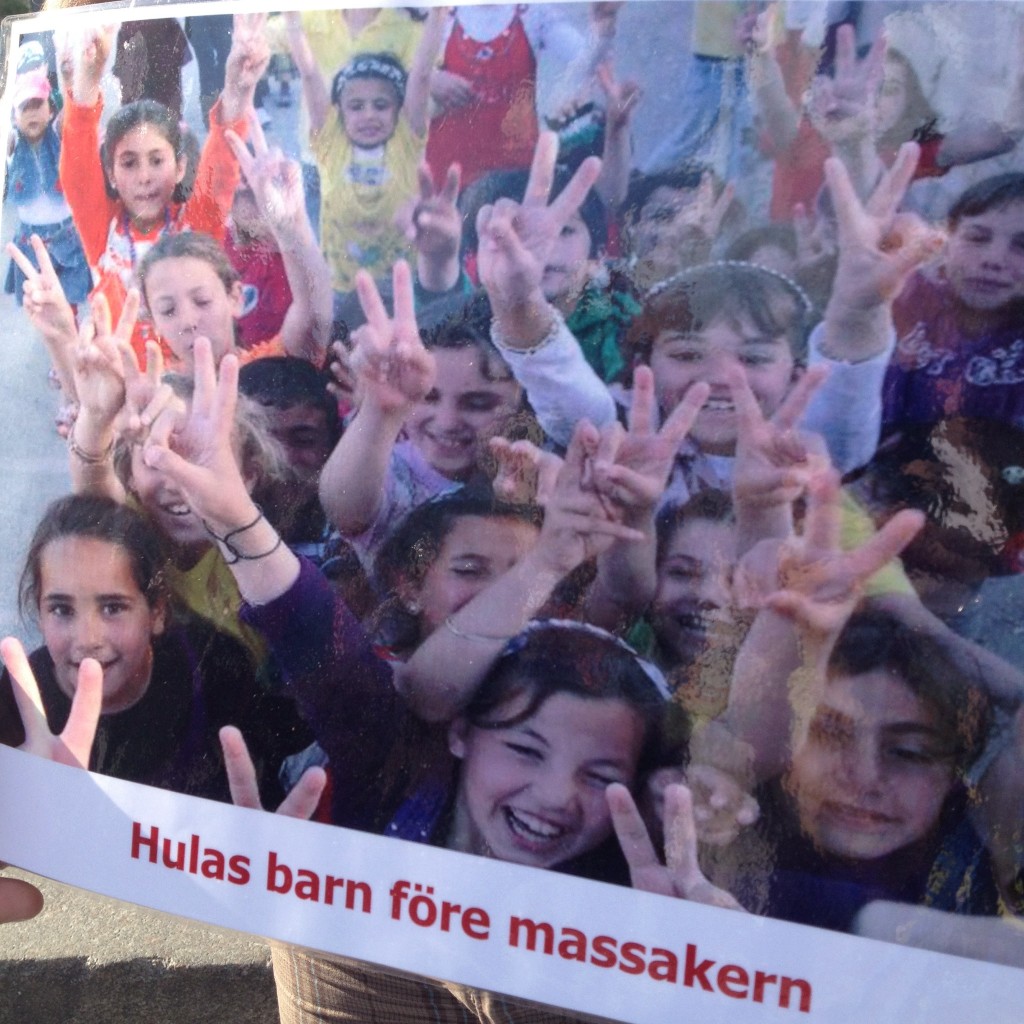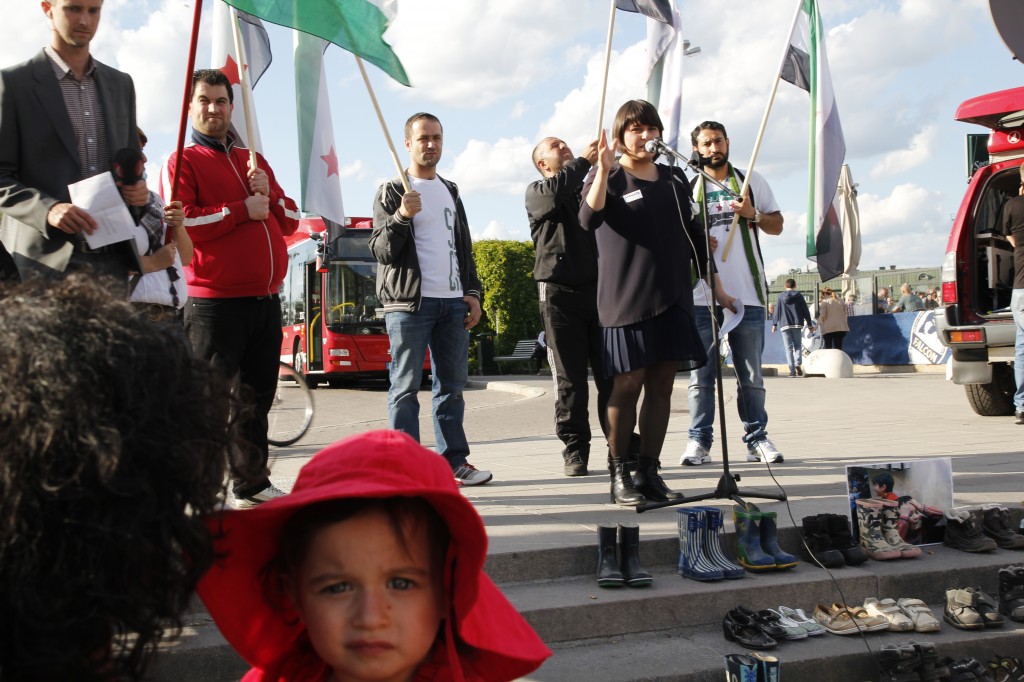 I går onsdag, den 20 juni, arrangerades en humanitär manifestation i Stockholm för att belysa situationen för barnen i Syrien. Flera talare var inbjudna. Bland de medverkande var skådespelerskan Melina Kinnaman som läste en dikt av den syriske poeten Faraj Bayrakdar, RFSU:s ordförande Kristina Ljungros, syriska aktivister, musiker och skribenter.