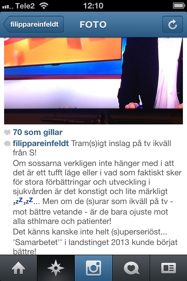 Moderata hälso- och sjukvårdslandstingsrådet Filippa Reinfeldt finns numera på Instagram. Och för oss i vänsterpressen som har haft svårigheter att någonsin få en kommentar när vi har bevakat landstingspolitiken upptäcker här en politiker som kommenterar både det ena och andra.