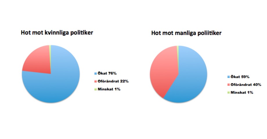 En klar majoritet av Sveriges kommuntoppar upplever att hot och trakasserier har ökat. Sedan förra valet upplever 76 procent av kvinnorna att hot och trakasserier har intensifierats, bland männen är siffran lägre, 59 procent, uppger Dagens Samhälle.