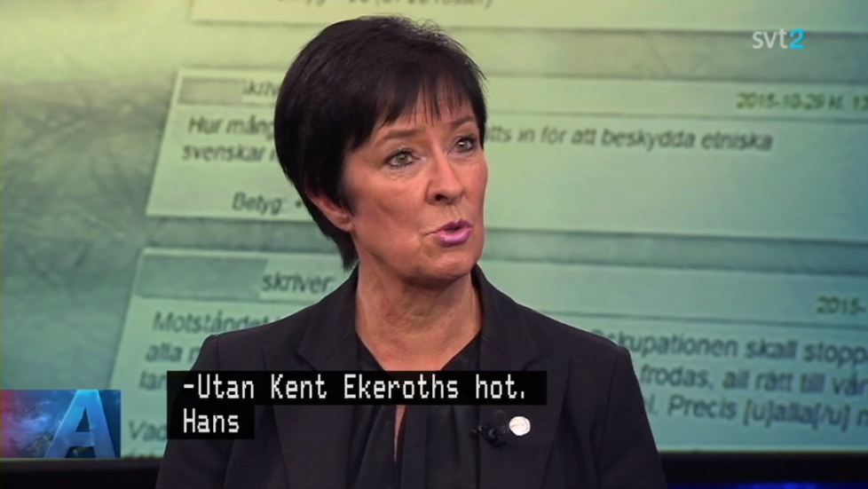 – Vad det handlar om Mona, i stället för att diskutera de problem vi har samhället så har ni konsekvent i tre decennier…ungefär… ägnat er år den här typ av saker. Glåpord, fula ord, lösryckta citat och anklagelser, svarade Bylund och tillägger att han och Kent har ”olika sätt att uttrycka sig på”.