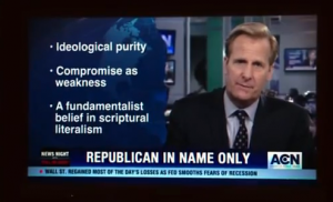 ”Ideological purity, compromise as weakness, a fundamentalist belief in scriptural literalism, denying science, unmoved by facts, undeterred by new information, a hostile fear of progress, a demonization of education, a need to control women’s bodies, severe xenophobia, tribal mentality, intolerance of dissent and a pathological hatred of the U.S. government.