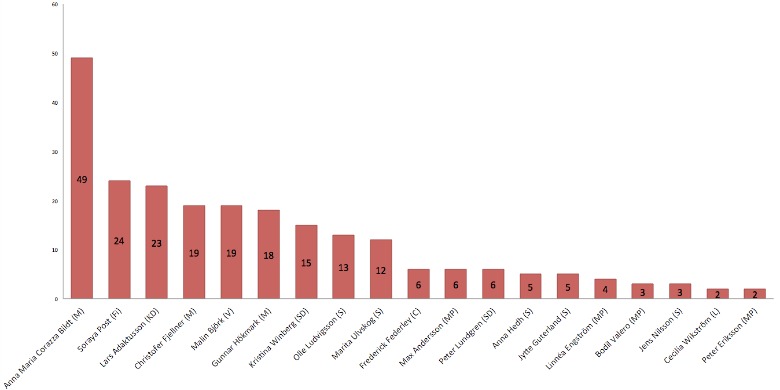 Generellt ligger de svenska parlamentarikerna högt på feltryckarlistan, eller så är de bara ovanligt måna om att korrigera sina röster i efterhand. Endast fransoserna ändrade sina röster oftare, i snitt 24 gånger per parlamentariker. Motsvarande siffra för svenskarna var 12 gånger.