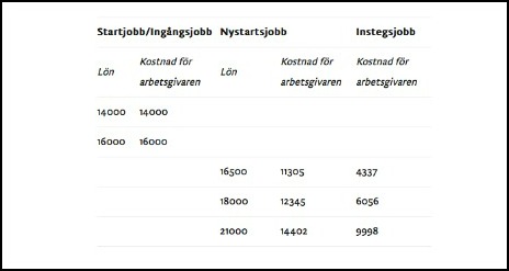 Faktum är att nystartjobben till och med är billigare än låglöneförslagen som Centerpartiet och Liberalerna lagt fram. Enligt Samuel Engbom, samhällspolitisk chef på TCO, som räknat på det hela, är det billigare för arbetsgivarna att anställa någon med dagens nystartsjobb än med de föreslagna startjobben respektive ingångsjobben.
