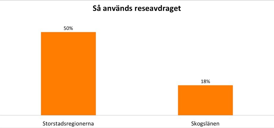 Men avdraget används i första hand inte av glesbygdsbor som har långt till jobbet, utan utnyttjas mest av högavlönade män i de tre storstadsområdena, visar Landsbygdskommitténs slutbetänkande. Enligt utredningen står de tre storstadsregionerna för hälften av hälften av kostnaderna, medan endast 18 procent går till skogslänen.