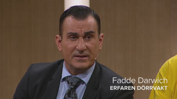 Den andra paneldeltagaren är kändis-dörrvakten Fadde Darwich. En polis från Göteborg. Och så de som SVT väljer att kalla de »utsatta tjejerna«. De heter Stina och Maja.