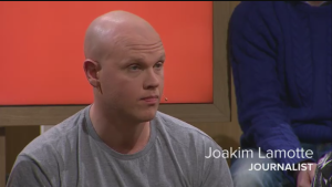 Programledaren Belinda Olsson börjar prata om Köln, Kalmar och gruppvåldtäkten på Silja Galaxy. Har detta med kultur och flyktingproblematik eller kön att göra?, undrar hon. Lamotte svarar att han varit runt på alla typer av skolor: de helvita välbärgade och förortsskolorna med 99 procents invandrare – det är lika vanligt överallt. Och han vill inte skuldbelägga invandrare.