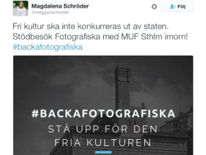 Men håll i er, det blir bättre. MUF Stockholm samlas i dag för ett stödbesök på konsthallen. Under hashtaggen #backafotografiska gör ungdomsförbundet uppror mot att staten konkurrerar ut den fria kulturen.